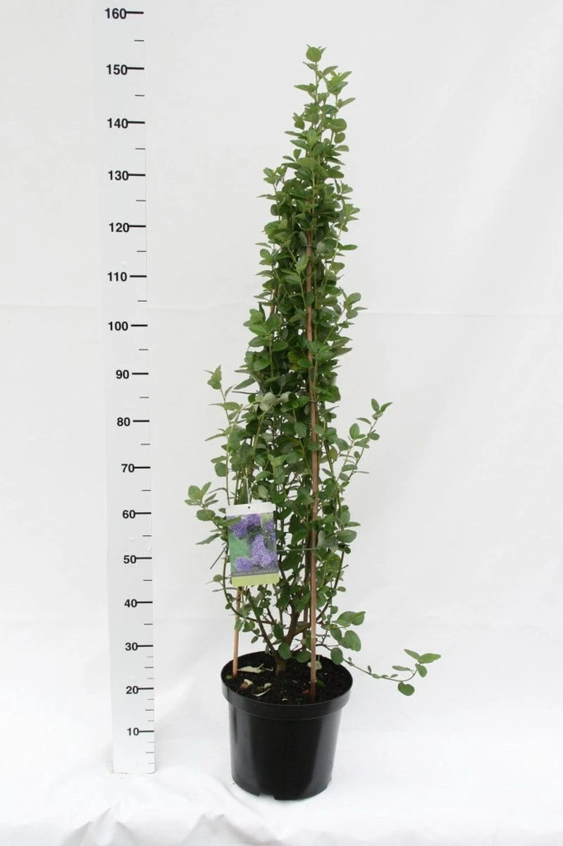 Ceanothus arboreus ‘Trewithen Blue’ is een mooie blauw bloeiende heester met een smalle opgaande groeiwijze. Ceanothus arboreus ‘Trewithen Blue’ is een rijkbloeiende Amerikaanse sering die naar verhouding erg hoog wordt. Hij kan 400 cm worden met een volwassen hoogte tot wel 600 cm. In zachte winters wil het blad soms aan de plant blijven zitten. Staat het liefst zonnig en beschut.Â